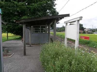 待合室の脇から駅へ入る構造です。駅と道路は少し離れています。