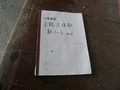 ホームの中央に古い待合室があり、駅ノートも設置されています。ハイクオリティーな落書き(笑)が多く「お察しください」な感じになっていますが…。