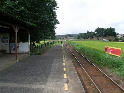 ホームは単式1面1線で、周りを田んぼに囲まれたところにあります。