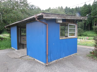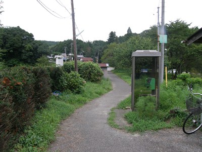 ホームの入り口から道路までは少し離れていて、線路沿いに100mほど歩く必要があります。待合室のすぐ前には公衆電話があります。