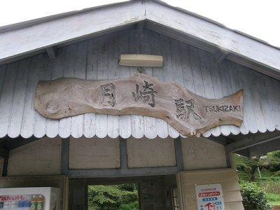 月崎駅には他の駅と違う造りの駅舎があり、駅舎の中にはレンタサイクルがあります。ホームは2面3線ですが、駅舎の反対側には使われていないホームがあります。集落は少し離れたところにあり、駅舎の付近は林のようになっています。