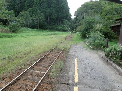 駅舎の辺りは木が迫っていますが、駅舎から離れた部分は開けています。