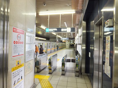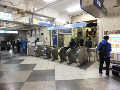 この改札口は降車ホーム中程にある改札口で、コンコースに直接つながっています。JR線との乗り換えに便利です。