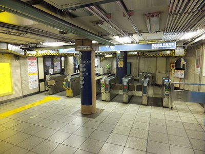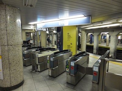 西新橋方面改札(2番線側)を内部より