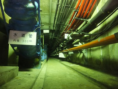 左上から右下に向かってB0、B1、B1内共同溝見学場所、先より共同溝、B2、B3、B3より高島屋、B4、B5、B6(閉鎖中)、B7、B8、B9、B10、B11、B11にある歯医者、B11付近にある日本橋、B12