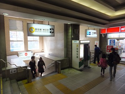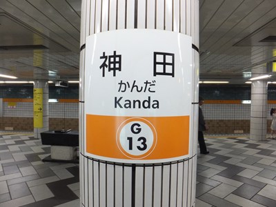 神田駅は東京メトロ銀座線の駅で、JR線との乗換駅です。開業当初は終着駅だった駅で、ホームは少し特殊な構造をしています。つい最近まで、「地下鉄ストア」という元祖駅ナカの一部が営業を続けていました。