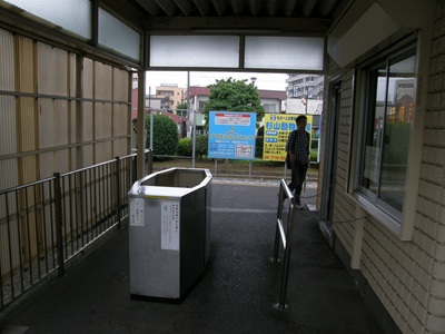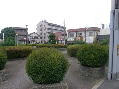 駅前は交差点になっていて、「イトーヨーカドー」があります。駅舎の脇は植込みがある広場になっています。