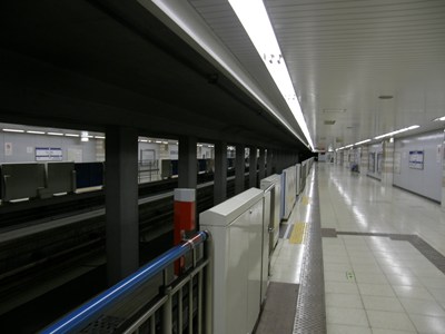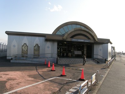 ホームは地下にあり、2面2線の線路配置です。駅舎はジェットエンジンをモチーフにしているといわれ、地上にあります。