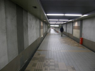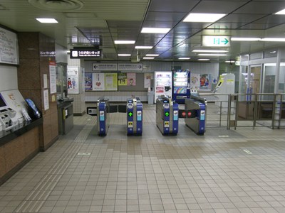 駅そのものは空港の誘導路の下にあるため、出入口と改札の間には少し長い通路があります。