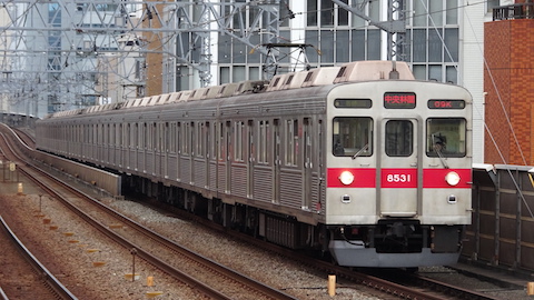 | 8500系(引退) | 8500系は新玉川線・地下鉄半蔵門線開業に合わせて新造された形式で、先行して東横線・大井町線に導入された8000系のマイナーチェンジ車両。5000系・2020系などに置き換えられて東急からは引退したが、長野電鉄・秩父鉄道・伊豆急行とインドネシアで譲渡車が運行されている(2025年現在)。 |