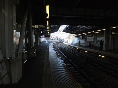 駅の西側は東側より地面が低く,西口は駅舎から階段を降りたところにあります。2002年の駅改良で,西口から直接上りホームに入る改札が出来ました。