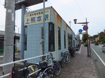 単式1面1線の線路配置を持つ駅で、JR上熊本駅とは線路・駅舎ともに独立しています。周辺は市街地で、市電を使えば市内中心部に容易に出られま