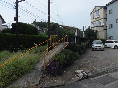 駅舎はなく、ホームの両端に設けられたスロープから駅に出入りする構造です。