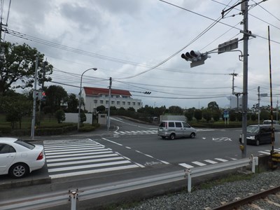 駅は国道387号線(左写真)と合志市南部の市街地へ向かう大きめの道路(右写真)の交差点の脇に位置しています。