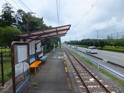 再春荘前駅は熊本電鉄菊池線の駅で、藤崎宮前〜御代志間の列車が停車します。駅のそばに国立熊本再春荘病院があることからこの駅名が付けられまし た。国道387号線に面した単式1面1線の線路配置を持つ駅で、両隣の駅にはかなり接近しています。