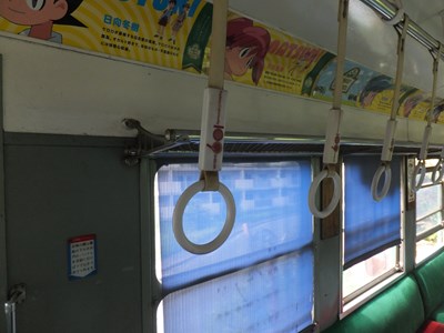 吊り手には東急時代から付けられていると思われるSHIBUYA109の宣伝が巻かれています。