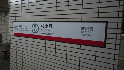 仙台駅から来ると、愛宕橋までは高層の建物が多かったものの河原町駅周辺では低層の建物が中心となる。名前の通り広瀬川のすぐそばにある。