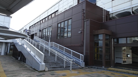 高架ホームで、ホーム上には柱のない広々とした構造。冬の雪・季節風に備えてか、列車の侵入する方向以外の4方向は完全にカバーで覆われている。