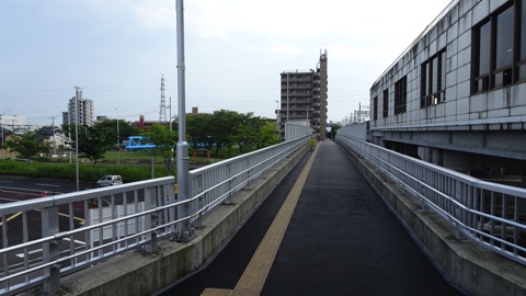 歩道橋は当駅のバリアフリールートにもなっており、そのまま駅が跨ぐ道路を反対側へ渡ることが出来る。