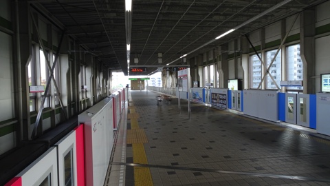 当駅ではすべての列車が入出庫線まで引き上げて折り返す。和泉中央と違いホーム上での折返しは線路配置の問題で出来ない。