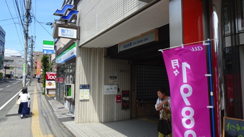 駅前の道はあまり太くない。幹線道路の下を走る区間が多い仙台市地下鉄では珍しい雰囲気の駅前。