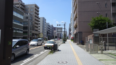 西側は東側と対称的にオフィスビルが多く見られる。