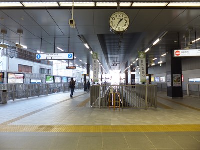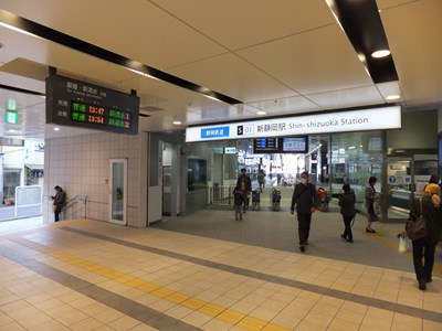 新静岡セノバと明確に区切られた新静岡駅の施設は鷹匠口のそばにある。駅前から改札を通ってホームへは段差が1段もなく、バリアフリーにかなった設計であ