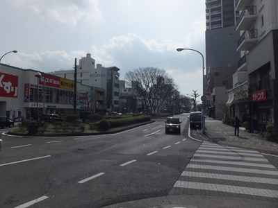 駅前には広い県道が通っており、駅の南側の区間は通称「つつじ通り」と呼ばれている。