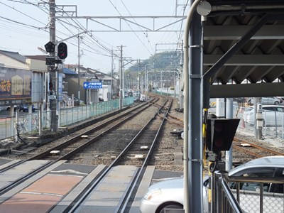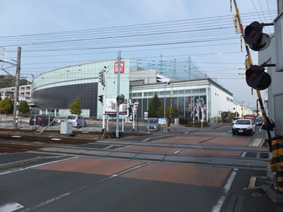駅の南側には旧東海道が通っていて、駅周辺は少し商店街然とした雰囲気が漂っている。駅舎から踏切を渡ったところにはバンダイホビーセンターが建つ。