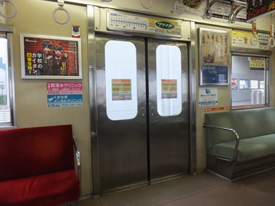 ドアは両開き式のオーソドックスなもので、案内表示機の類は付いていない。