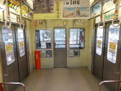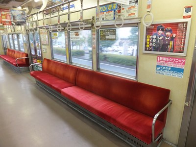車内は全てロングシートで、連結面側の座席は優先席である。座席部に掴み棒が一切ついておらず、後述の通り網棚も少ないので、とても