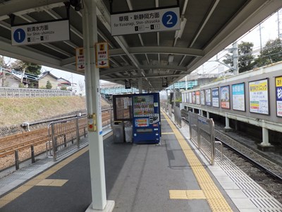 ホームも駅舎と同時期に改築されたようで、曲線的な屋根が特徴の新しいホームである。この駅の新静岡方から入江岡までは静鉄とJR東海道線の擬似複々線区