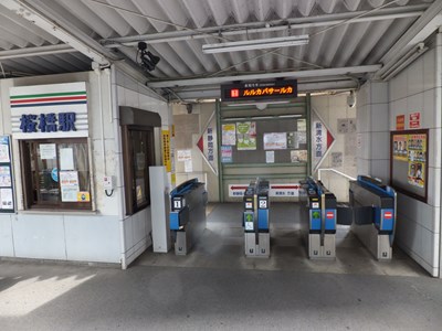 左写真を見るとこの駅の構造がよく分かる。右写真奥に見えるのが桜橋である。