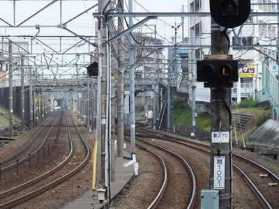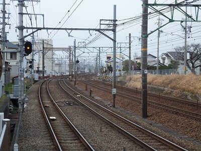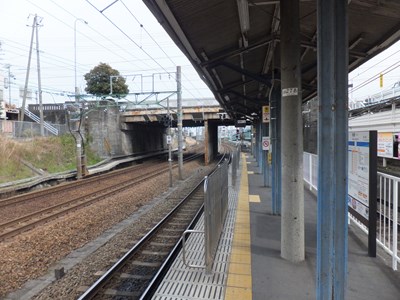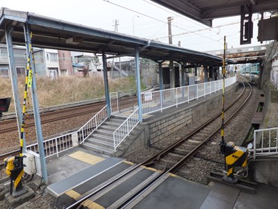 次の入江岡との間の駅間はとても短いが、その間に渡り線がある。津波の恐れがあるときには入江岡駅を封鎖の上この渡り線を使って全列車を入江岡駅付近で折