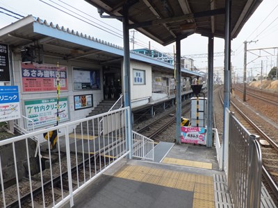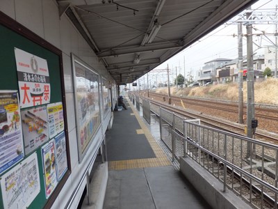つ柚木駅とは違い、上下線のホームが互い違いのような配置になっている。