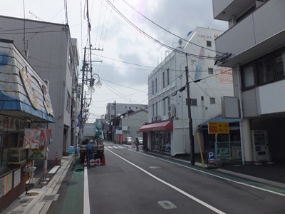 巴町口の周辺もかつての市街地であるようだ。右の建物の裏には巴川が流れる。