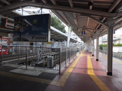 2番ホームの向かい側にも降車用ホームの跡がある。さらにその裏手(広告の裏側)はかつては3番線があった場所で、3番線は静岡清水線と駅前を走る清水市