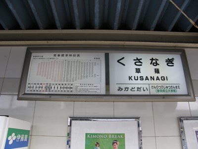 かつての草薙駅には国鉄タイプに近いデザインの駅名標が設置されていた。昔の写真を見ると他駅でも同様のものが使用されていたようだが、現在では使用され