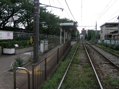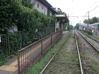 早稲田方面ホームは駅の裏手にツタが生い茂っています。
