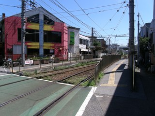 [ 飛鳥山駅 あすかやまえき ] 東京都北区 この駅はその名前の通り飛鳥山公園への最寄り駅で、また飛鳥山〜王子駅前間は荒川線では唯一残る完全な併用軌道区間(道路と路面電車の軌道が一体化した区間)として知られています。 併用軌道区間に入る手前の新設軌道(道路と路面電車の軌道が分離されている区間)に相対式2面2線のホームはあり、飛鳥山へは都電が走る道路を渡って連絡します。 |