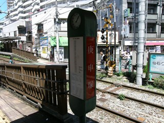 [ 庚申塚駅 こうしんづかえき ] 東京都豊島区 「庚申塚」とはこの駅からすぐにある猿田彦大神という神社にあった塚の名前で、そこは古くは中山道の立て場(宿場と宿場の間にある休憩所)として栄えた場所だそうです。 相対式ホーム2面が互い違いに並んだ荒川線の標準的な線路配置の駅ですが、昭和をイメージしたレトロな装いになっています。三ノ輪橋方面ホームにはおはぎのお店も営業していて、とげぬき地蔵で有名な地蔵通り商店街への下車駅はいつもにぎわっています。 |