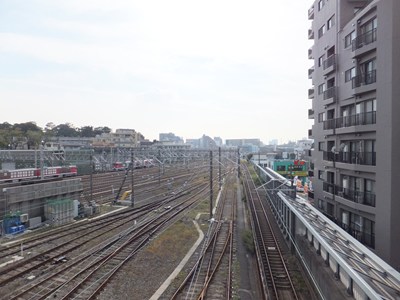 駅の南側にも留置線があり、線路は繋がっています。左に向かう線路は馬込研修場につながっています。