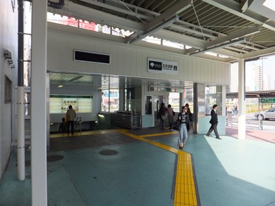 島式1面2線の単純な線路配置で、改札口は2か所、出入口は7か所あります。地下通路は広く、出入口のひとつはJRの駅に直結しています。