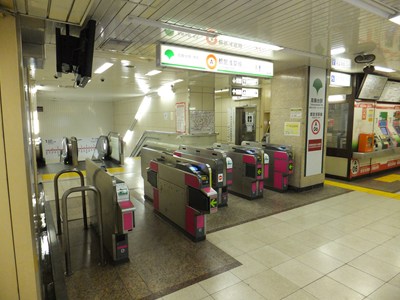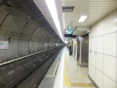 ホームの部分にもシールド工法が用いられていて、単式ホームを二つ背中合わせにしたような線路配置です。改札は1か所、出入口も2か所しかないなど、利用客に合わせて設備も小ぢんまりとしています。