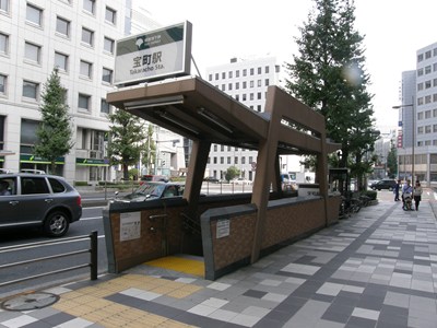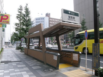 宝町駅は都営浅草線の駅です。東京駅の南東にあり、東京メトロ銀座線の京橋駅とは目と鼻の先の距離にあります。