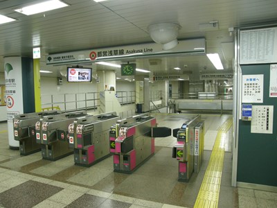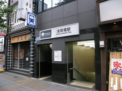 浅草橋は都営浅草線とJR総武線の乗換駅です。駅の周辺は人形・衣料品などの問屋が集まるエリアで、浅草線の駅には「人形の久月 久月総本店前」という副駅名が付けられています。