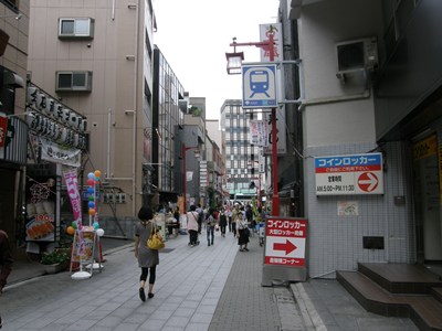A4出入口は江戸通りよりも1本西側にある道に面しています。商店街のようになっていて、にぎわっています。