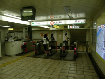 雷門方面改札のそばには銀座線の改札口があり、両線を乗り換えるときにはこちら側の改札を使います。