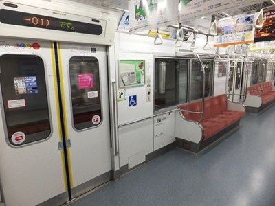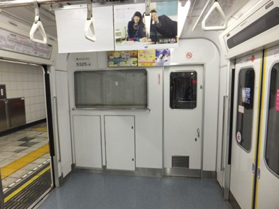 先頭部には窓が設置されていますが、地下区間ではカーテンが閉じられます。