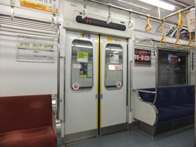 ドアには化粧板が張られています。改良によって中央に黄色いシールが追加されたようです。